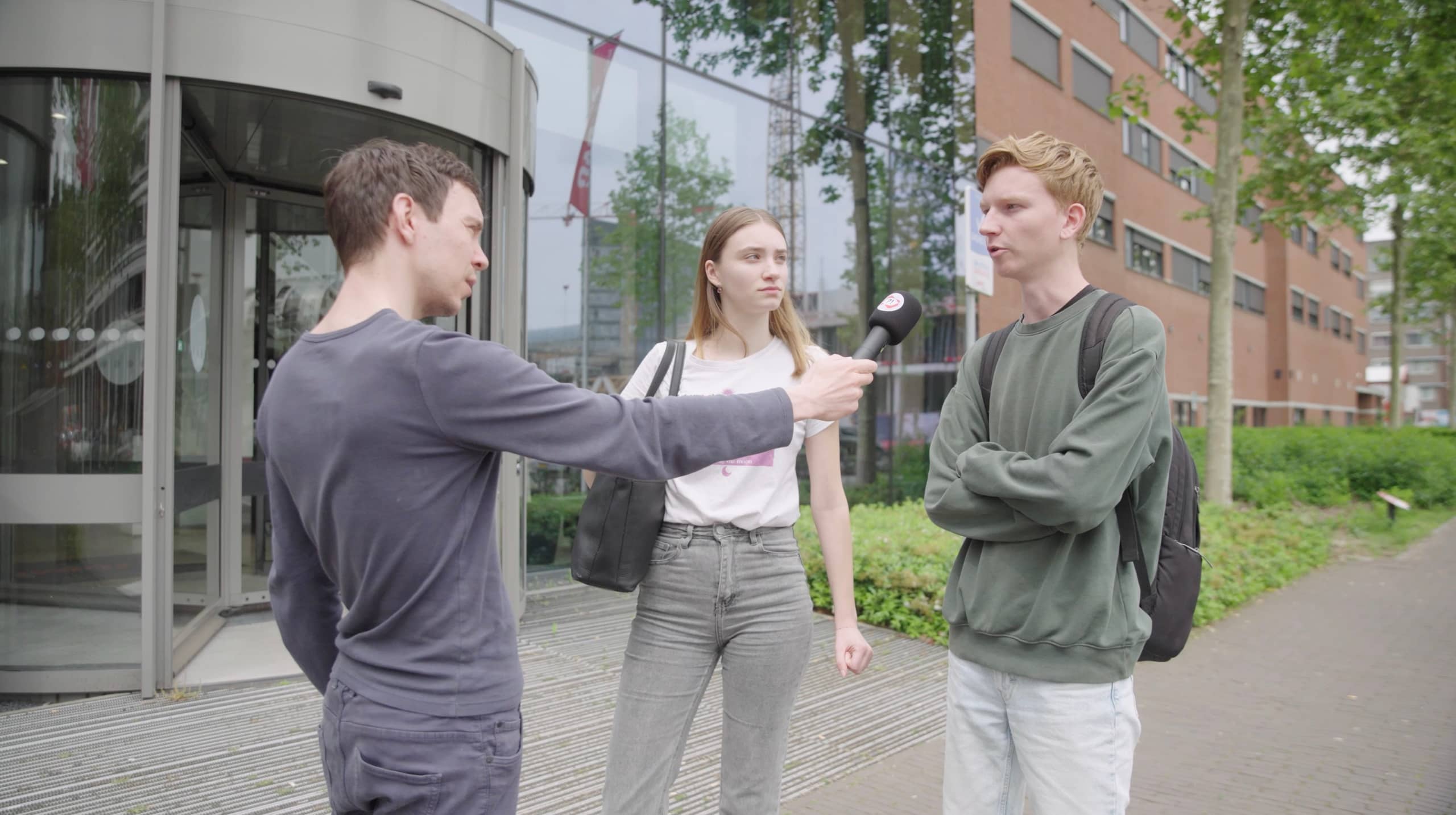 Ben jij een hulphond? Leer je op school ook over toegankelijkheid? Mijn naam is Fabian Franciscus en vandaag ga ik mensen een vraagje stellen... over toegankelijkheid in het onderwijs. Ken je mensen met een handicap? - Ja. Jazeker. Ja, ik ken zeker mensen met een handicap, eigenlijk wel ja. Ik zie heel weinig mensen met een handicap. Of misschien zie je het dan niet van de buitenkant... maar zit het wel aan de binnenkant. Vind je het een naar woord; handicap? - Nou, het klinkt voor mij nogal negatief... terwijl als je kijkt naar bijvoorbeeld iets zoals autisme... Ik zie dat niet perse als iets negatiefs. Het is meer een beetje een stukje personaliteit van iemand. Ik heb autisme, vind je dat een beperking? - Nee... - Hoe zouden mensen college volgen als ze doof zijn? - Ja... Ik weet niet of je dan zomaar normaal een college kan volgen. Ik denk dat het handig is als zo'n persoon online... college volgt en dan met ondertiteling erbij. Met zo'n begeleider die doet gebarentaal erbij. Ja, ik vind het heel goed. Dat dat kan en dat zij dan ook gewoon zo veel mogelijk normaal les kan volgen. Hoe zou je mensen met een handicap kunnen helpen? - Nou, als ze mij zouden vragen om hen te helpen, dan zou ik natuurlijk altijd wel... meehelpen als ze iets nodig hebben. Gewoon vragen, gewoon een vragen stellen waar hij heen moet. Ik zou überhaubt vragen of ze überhaupt hulp nodig hebben... want soms is dat niet eens nodig denk ik. Alleen ik vind het altijd een beetje lastig om te peilen of ze... hulp nodig hebben of dat het wel goed gaat. - En wat zou je dan ook alweer doen? - Een vraag stellen.
